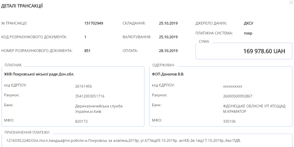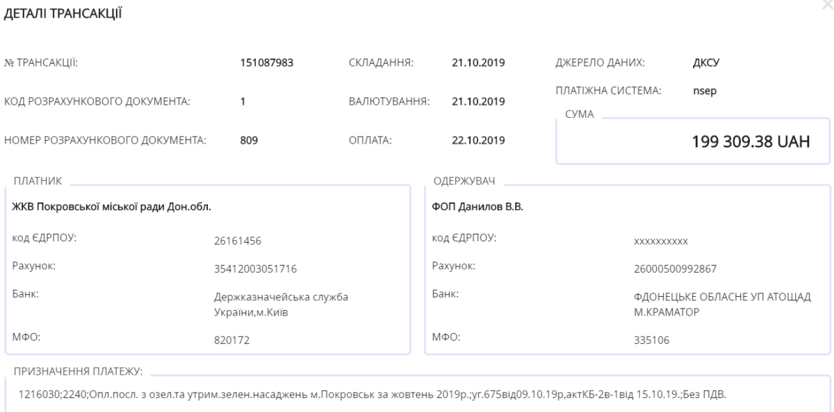 54-річний Віктор Данилов з Покровська отримав від Житлово-комунального відділу трохи меншу суму — 369 тисяч 287 гривень 98 копійок.