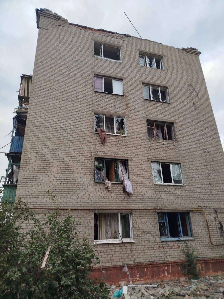Через влучання у багатоквартирний будинок повністю зруйновано під’їзд, у квартирах опинилися заблоковані люди.