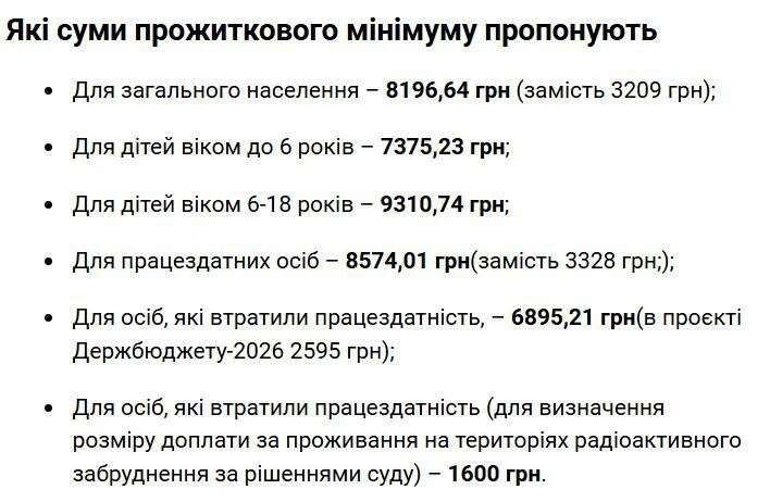 Прожитковий мінімум пропонують підвищити в 2,5 рази — з 3209 грн до 8196 грн