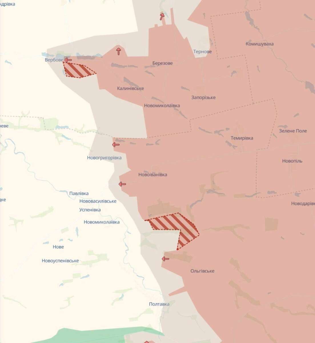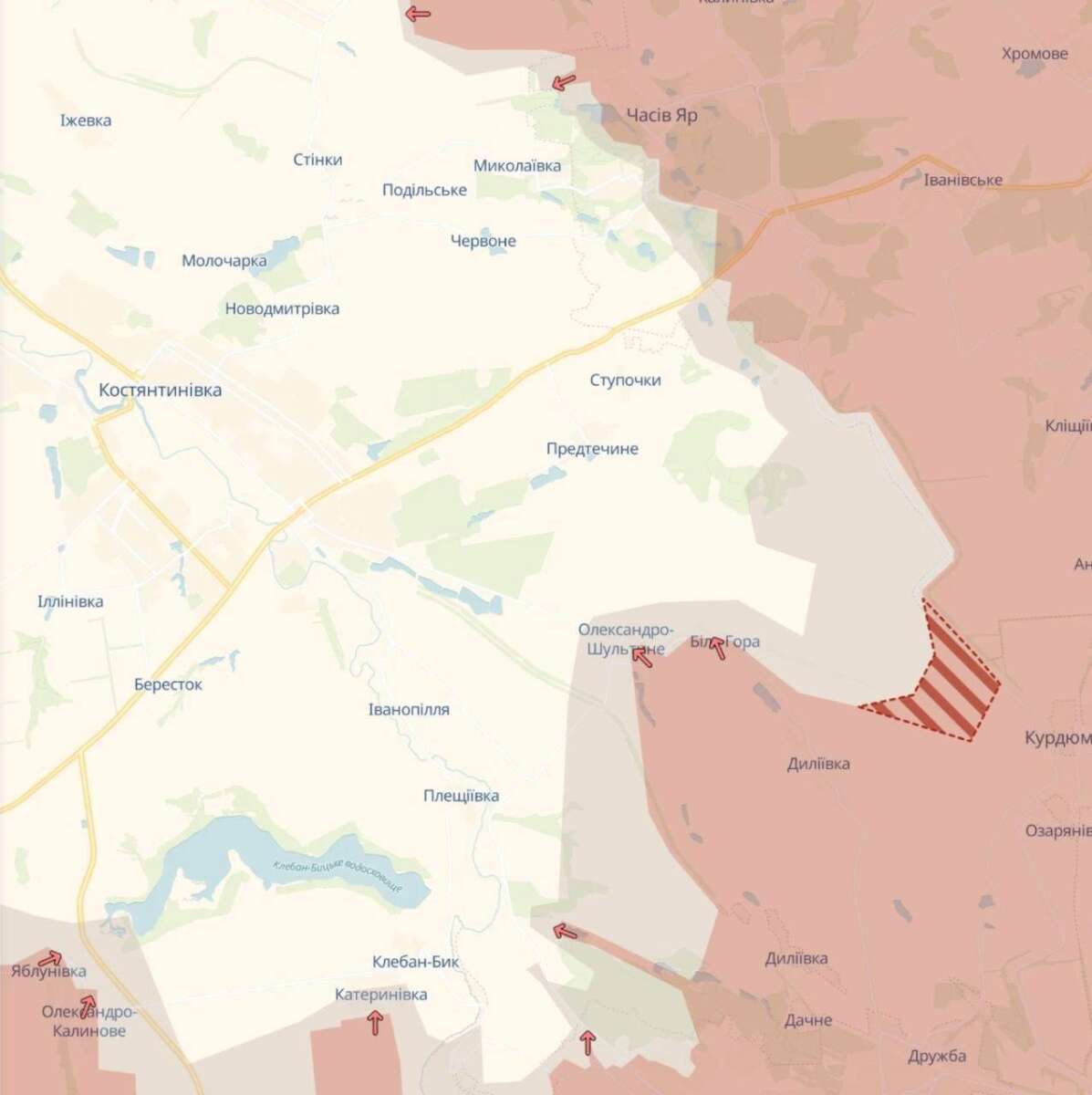 АктуальноНовости російські війська просунулись в сторону Костянтинівки: поблизу Білої Гори, — DeepState. 3 октября 2025 - 13:20 Поделиться Facebook Twitter Telegram WhatsApp Viber Нові позиції російські війська зайняли також на Лиманському напрямку: поблизу Шандриголового. Крім того, армія рф продовжує рух на Дніпропетровщині та Запоріжжі: є просування поблизу Новоіванівки і Вербового. - Реклама -