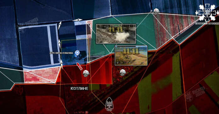 У районі Котлиного, противник намагався прошмигнути північніше н.п та сховатися на стику посадок, але наші бійці не дали кнурам розгубитися: FPV-дрон їх ідентифікував і коректно відпрацював. Схоже, що спроба обходу йшла з північно-західного флангу, з боку агрофірми — це місце зараз під пильною увагою.