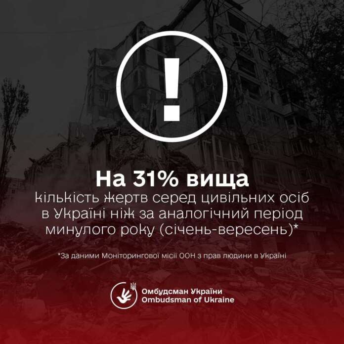 За дев’ять місяців 2025 року втрати серед мирного населення залишаються неприпустимо високими, повідомляє Моніторингова місія ООН з прав людини в Україні.