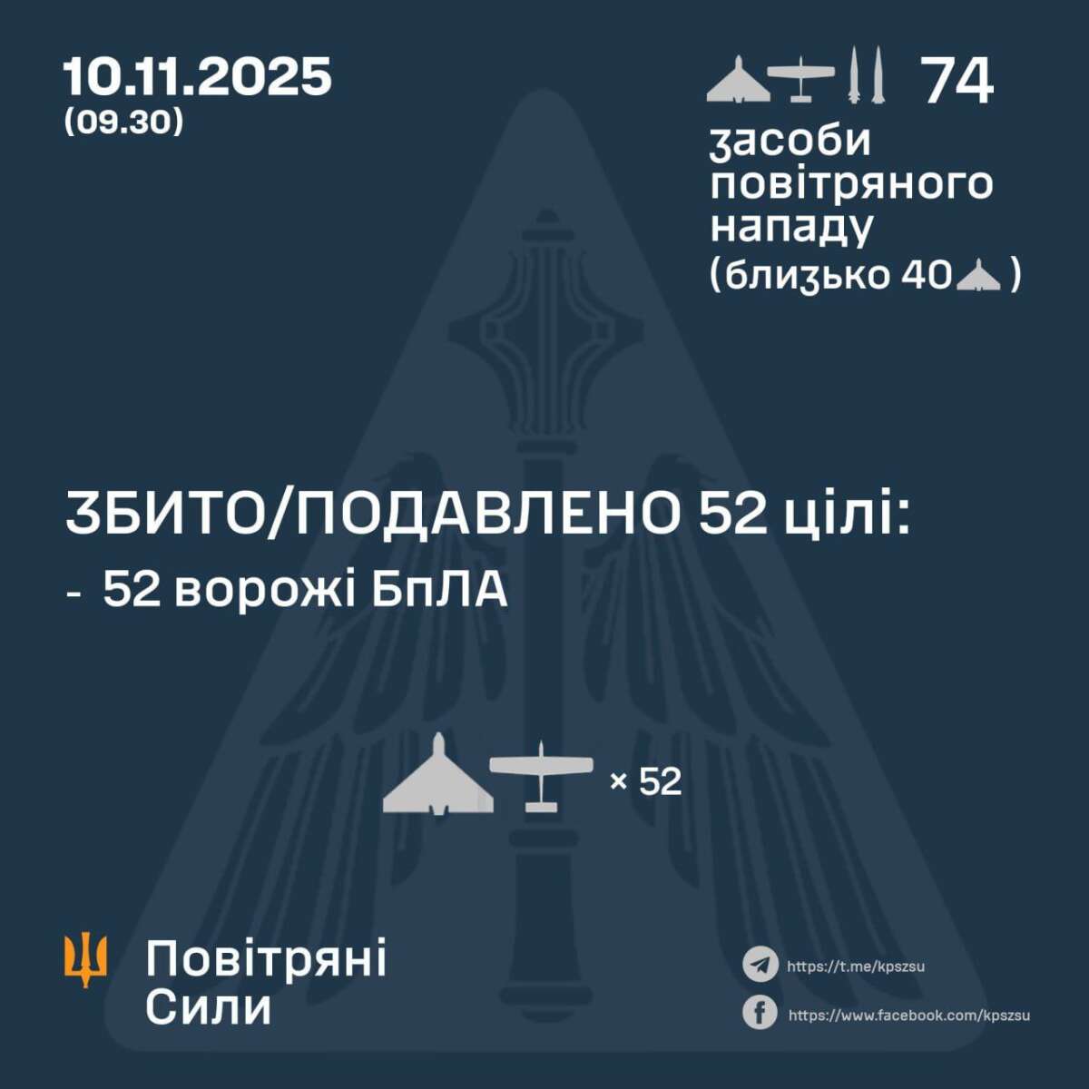 У ніч на 10 листопада росіяни атакували Україну “Кинджалами”, зенітними ракетами та дронами