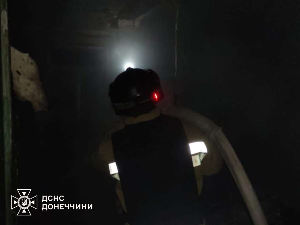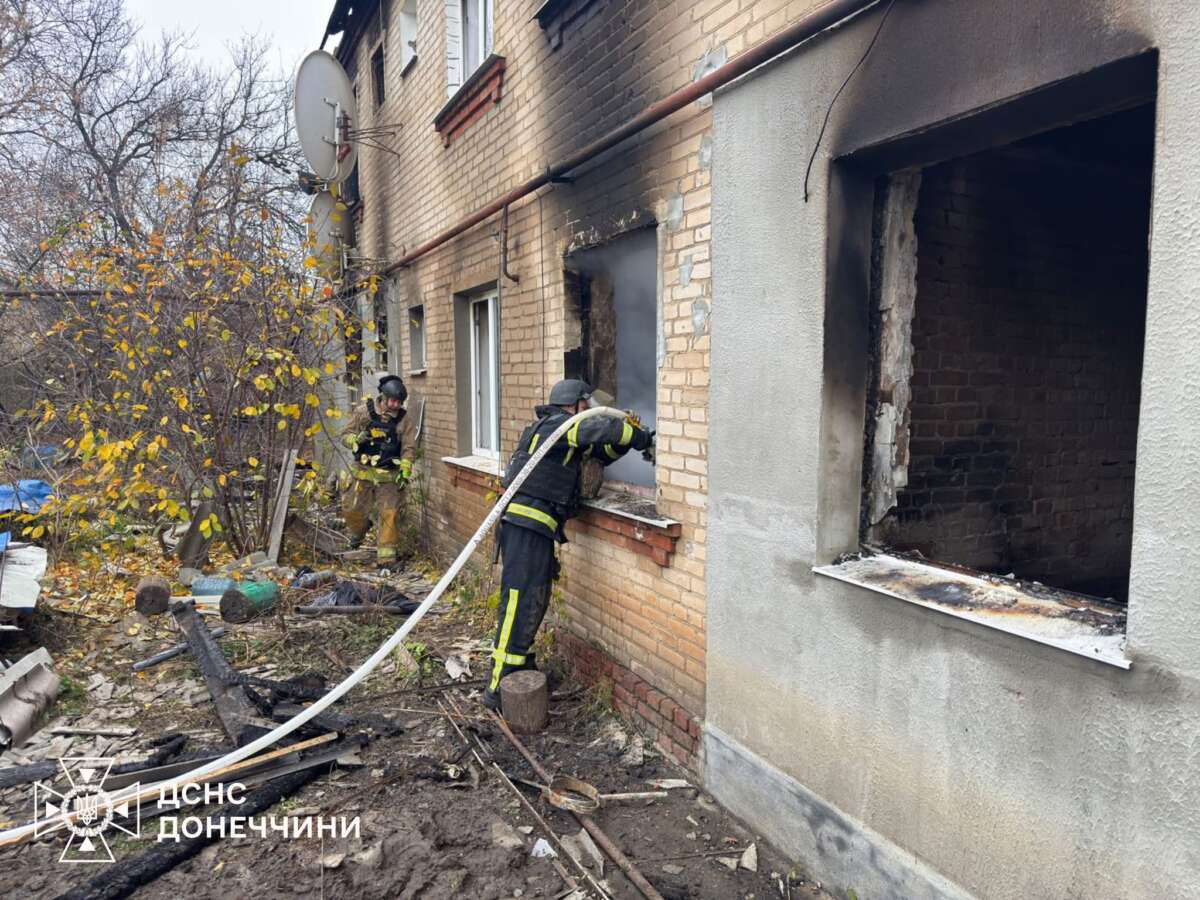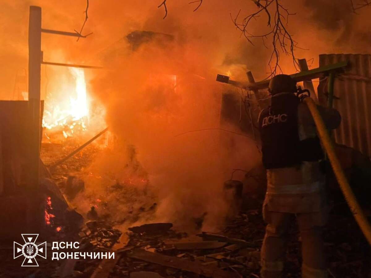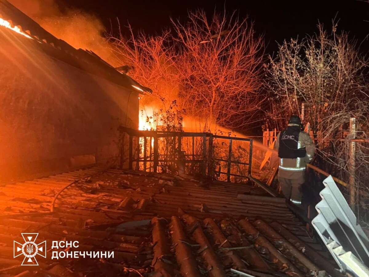 Внаслідок російського удару у Добропіллі виникла пожежа приватного житлового будинку та господарської споруди. Рятувальники локалізували займання на площі 90 кв. м, однак через загрозу повторних обстрілів були змушені тимчасово припинити гасіння.