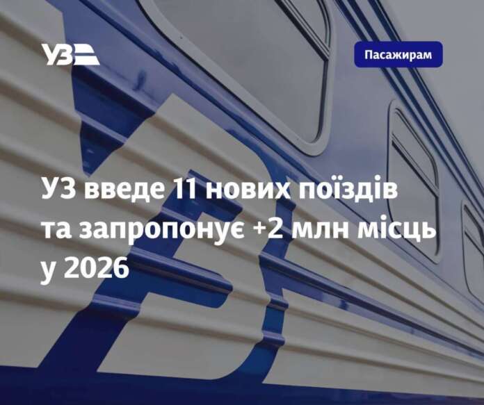 Укрзалізниця запускатиме 11 нових поїздів та додасть ще 2 млн місць у 2026 році. Серед них — новий поїзд №47/48 (Краматорськ) Барвінкове — Чоп.