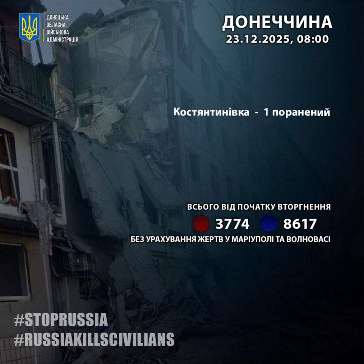 За 22 грудня росіяни поранили 1 жителя Донеччини – в Костянтинівці