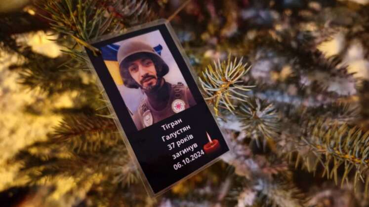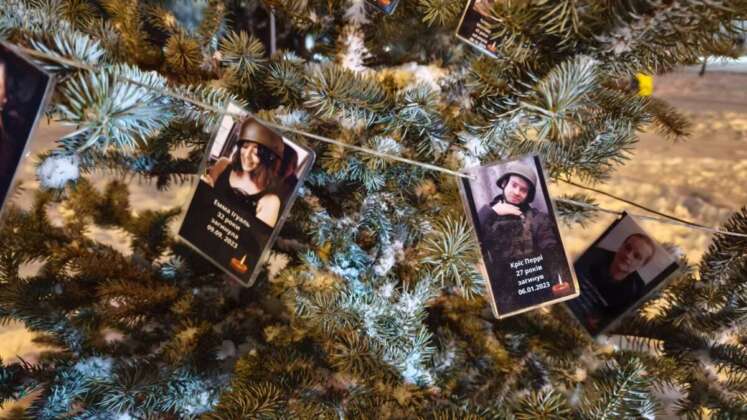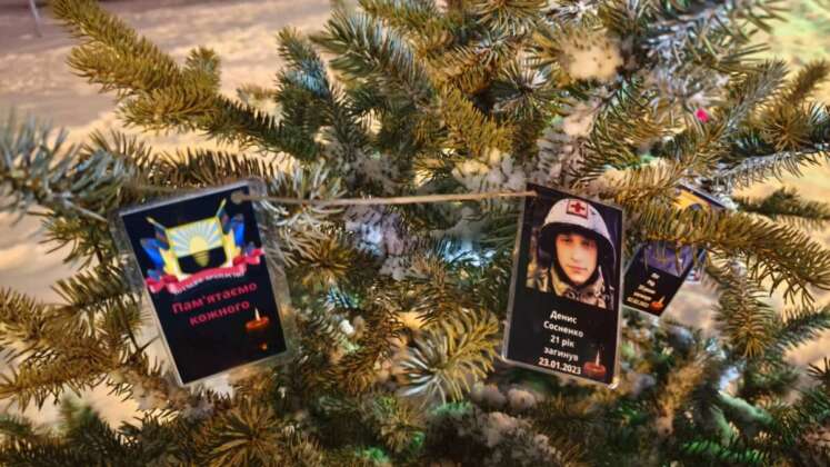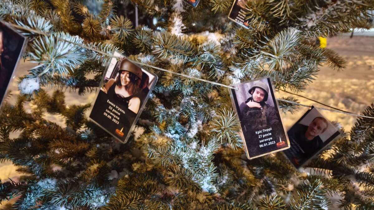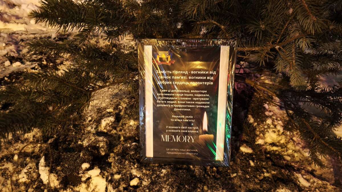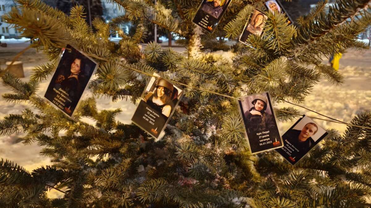 «Це зовсім не святковий флешмоб. Замість іграшок — фотографії загиблих волонтерів, що до останнього займалися евакуацією в гарячих точках на Донеччині, загинули, так і не зустрівши в родинному колі з ялинкою цей новий рік.