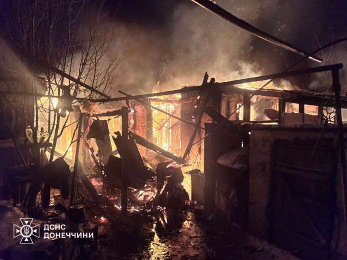 У Слов’янську внаслідок ворожого обстрілу виникло загоряння на території приватного домоволодіння. Вогонь охопив дві господарські споруди та легковий автомобіль. Надзвичайники ліквідували пожежу на загальній площі 80 кв. м.