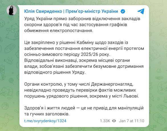Органи контролю, у тому числі Держенергонагляд, невідкладно проведуть перевірки фактів можливих порушень урядового рішення, зокрема у місті Львові.