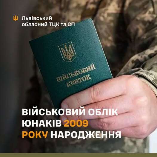 Юнаки 2009 року народження до 31 липня мають стати на військовий облік