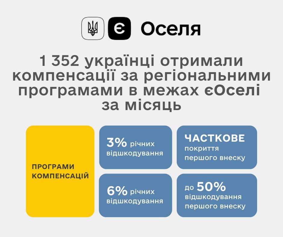 1352 українці за місяць отримали компенсації за регіональними програмами в межах «єОселі»