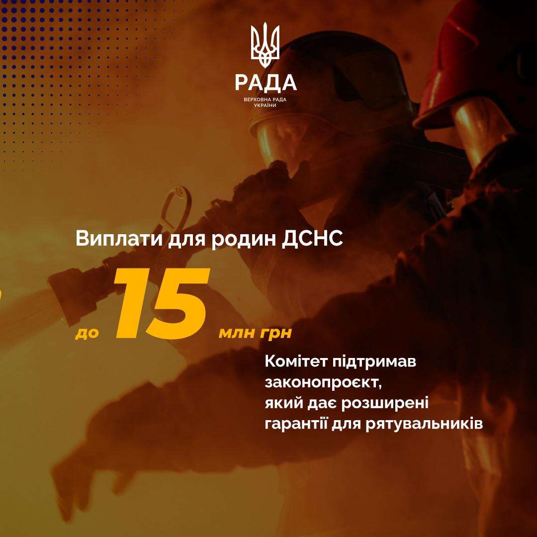 15 млн грн для родин рятувальників і захист за стандартами ЄС: у Верховній Раді розглядають законопроєкт