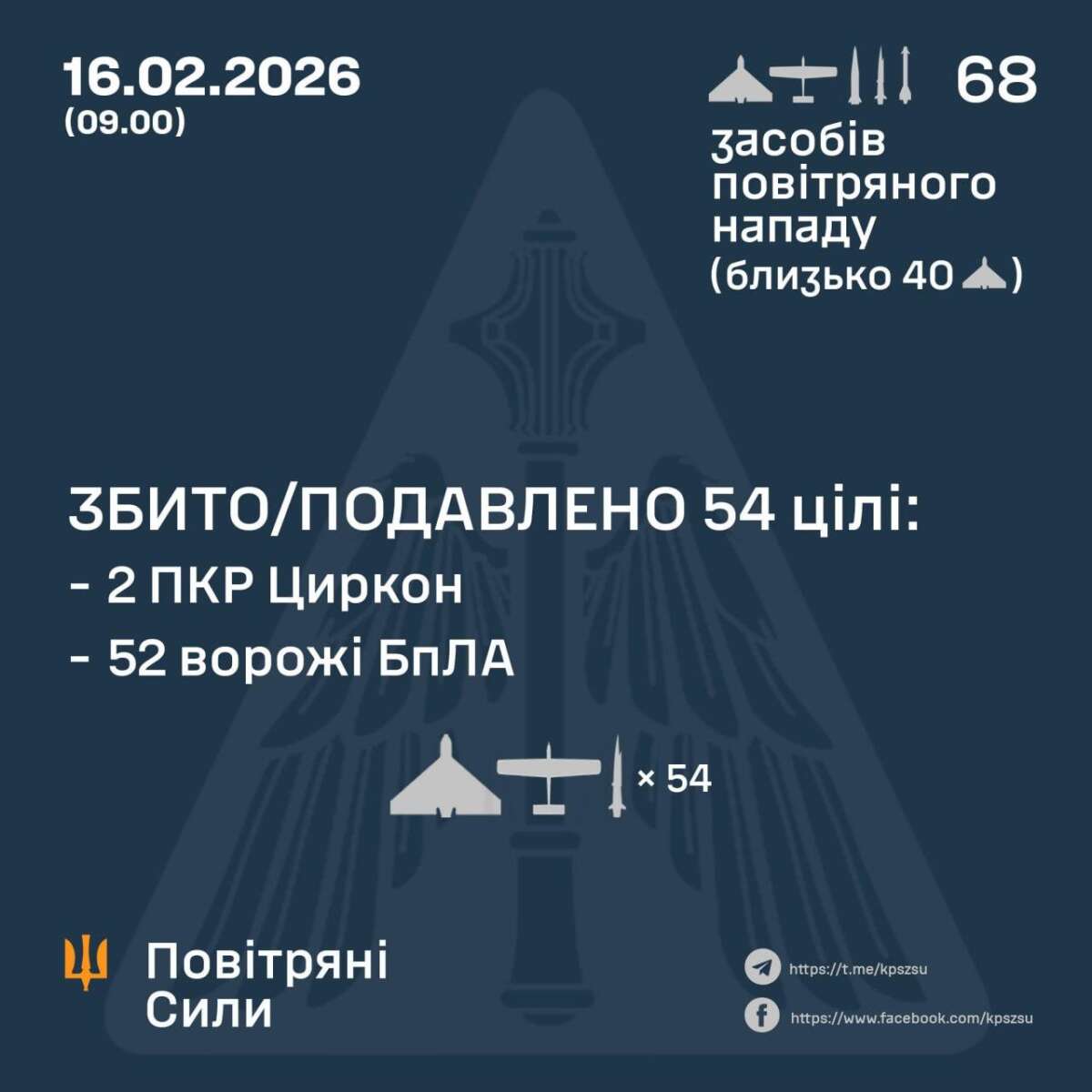 Зафіксовано влучання однієї ракети та 9 дронів, а також падіння збитих (уламки) на 2 локаціях. Інформація щодо трьох ворожих ракет уточнюється