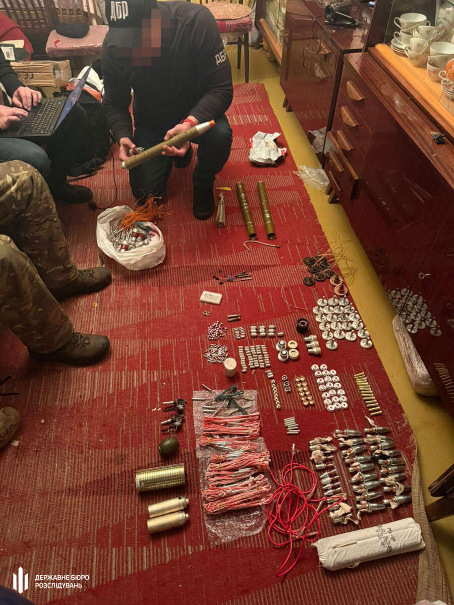 Під час обшуків слідчі вилучили бойові частини зарядів, ручні гранати, електродетонатори, капсулі-детонатори, компоненти до гранатометних пострілів та інші засоби ураження.