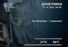 За 22 грудня росіяни поранили 1 жителя Донеччини – в Костянтинівці